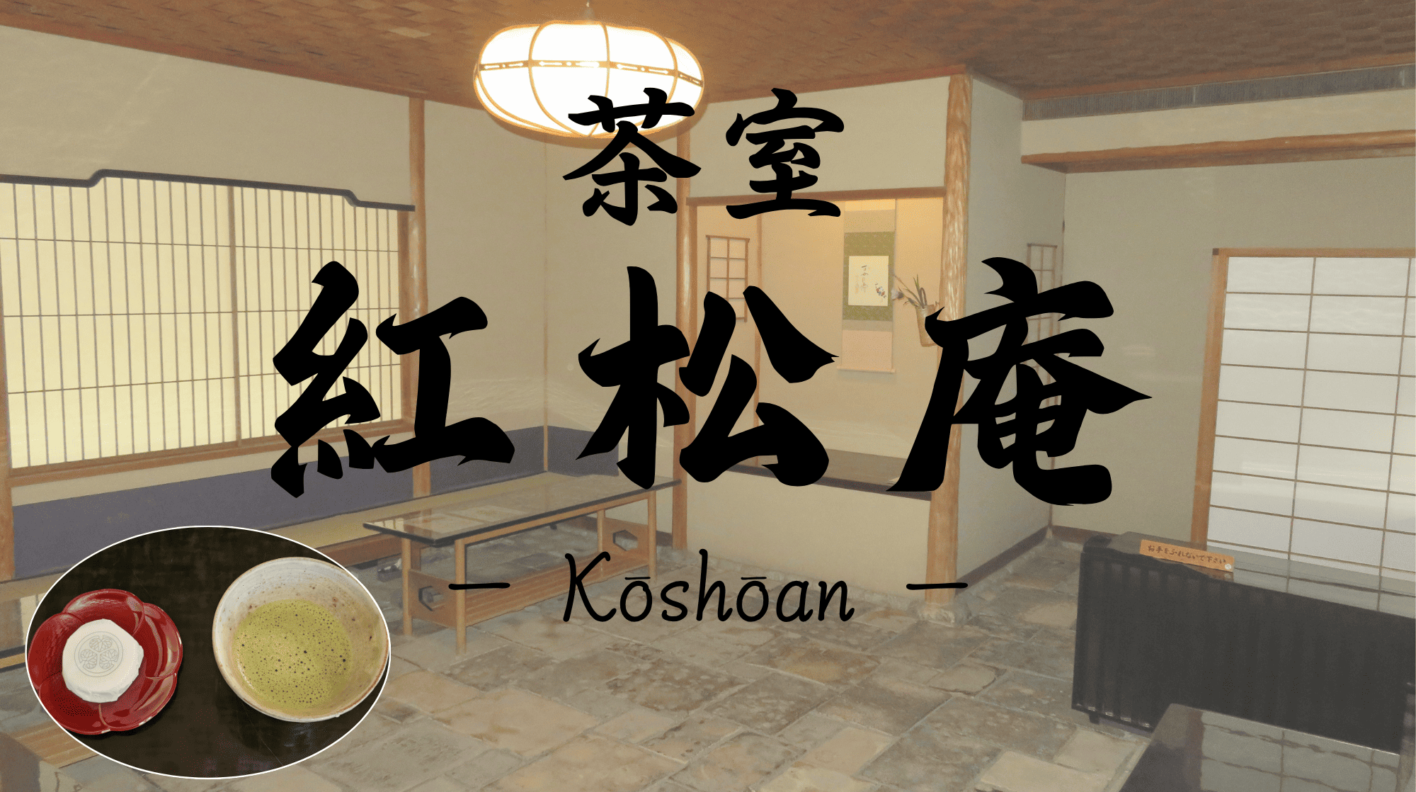数寄屋造りの茶室である紅松庵は、昭和48年(1973)の庭園整備を記念して、本市出身の松下幸之助氏の寄附により翌年5 月に落成しました。「紅葉渓」の「紅」と松下氏の「松」からの命名です。茶室からの庭園の眺めは、四季を通じて素晴らしく、渓流の響に耳を傾けながら、紀州の伝統あるお茶とお菓子を楽しむことができます。